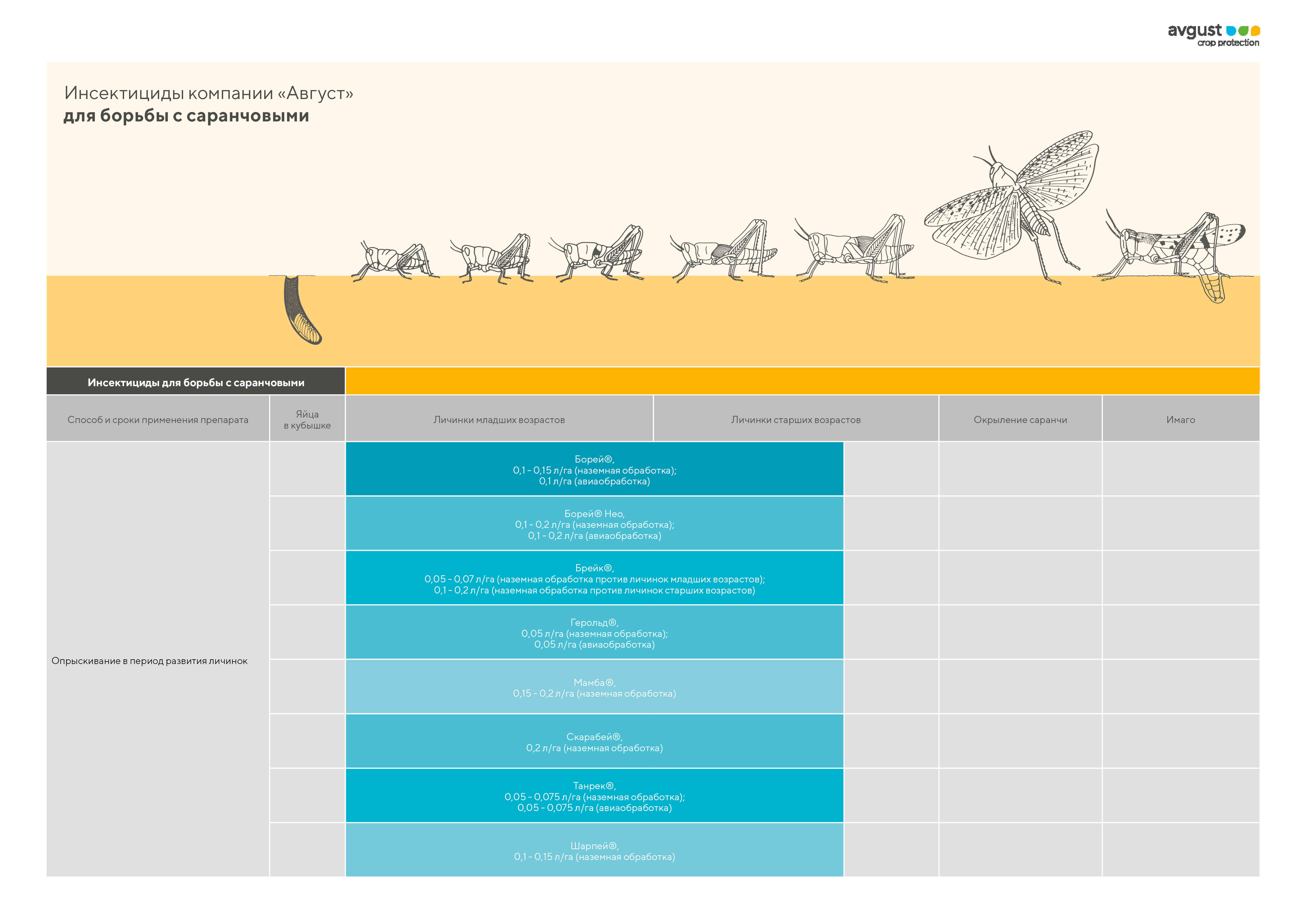 Бидайды, рапсты*, қыша*, алма ағашын, мақтаны, ағаш екпелерін жапырақ жейтін зиянкестерден қорғауға, сондай-ақ шегірткелермен күресуге арналған Инсектицид