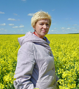 Т. С. Буйкевич на поле рапса, который полностью зацвел 6 мая