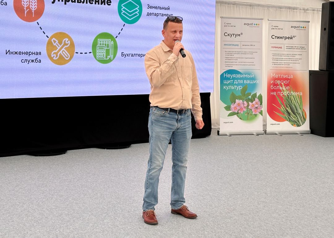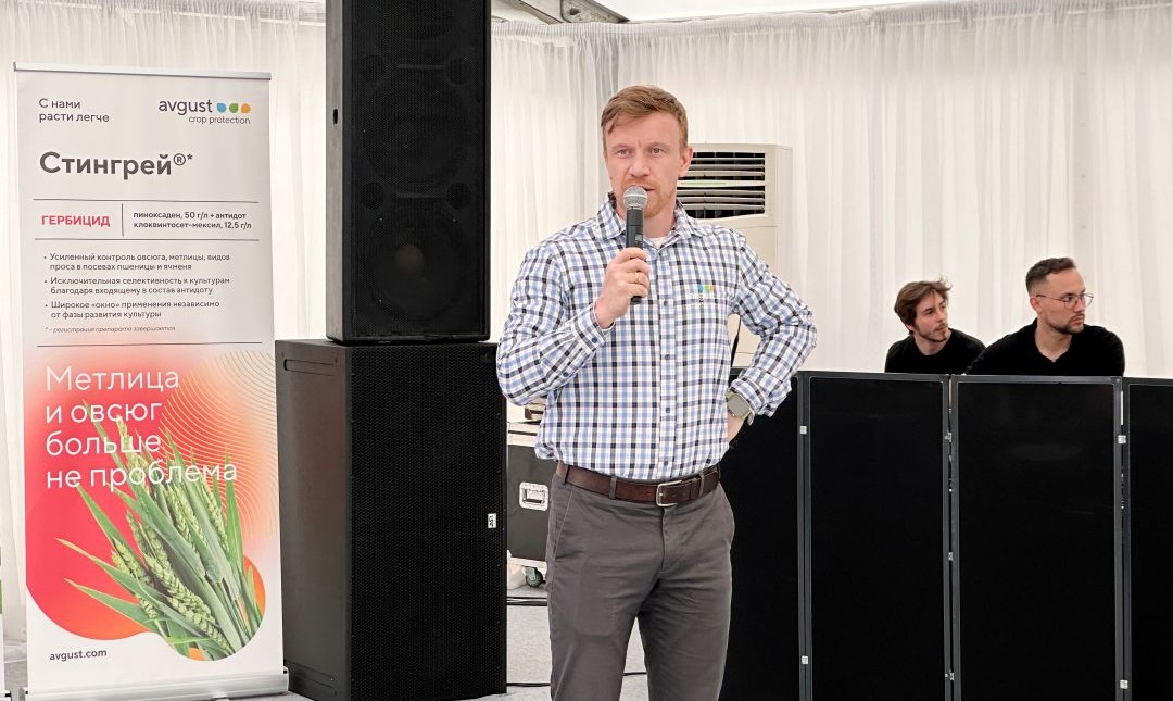 Начальник департамента маркетинга «Августа» Дмитрий Белов рассказал о защите культур в сложных погодных условиях. Особое внимание он уделил новинкам компании – протравителям Байсайд и Стерлинг, гербициду Стингрей и фунгицидам Ланцея и Эвклид.