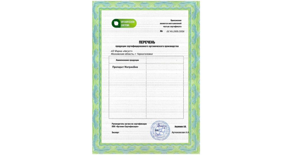 «Август» получил такой сертификат для МатринБио, так как в компанию регулярно поступали запросы от коллег и партнеров – из стран Латинской Америки, СНГ и других, где развито органическое земледелие и растет спрос на биопрепараты.