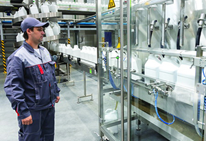 Ну а потом была незабываемая экскурсия по заводу. Надо сказать, что мы со своими партнерами уже побывали на двух заводах «Августа» в Чувашии и Беларуси и могли сравнить их с третьим. Новый завод компании поражает масштабами, полной автоматизацией, чистотой и тишиной. Людей практически не видно, в огромном цехе может быть всего два - три человека, в то же время все работает, продукция перемещается с линии на линию. Аппараты выдувают канистры, они тут же идут на технологические линии, где наполняются препаратами, складируются, затариваются с помощью промышленных роботов… Надолго мы задержались в заводской лаборатории, задали много вопросов ее руководительнице, посмотрели, например, как работает бисерная мельница.