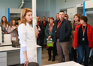 Для гостей была проведена экскурсия по заводу. Они смогли увидеть и оценить масштабы производства, а также ультрасовременное оборудование и технологии, ознакомились с устройством складских помещений и лабораторий заводского научного центра.
