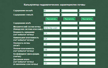 Калькулятор гидрологических свойств почвы