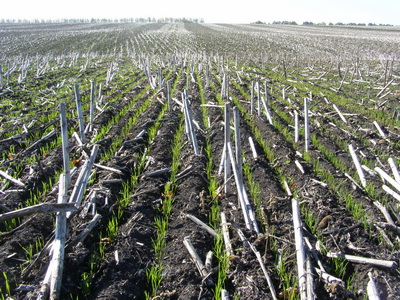 Всходы пшеницы, посеянной после подсолнечника