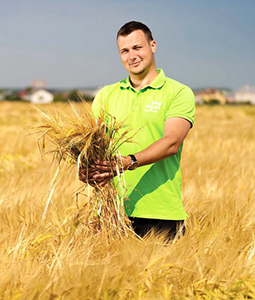 Именно в «Обухове» сделано заглавное фото номера. Региональный менеджер компании Василий Евсиков демонстрирует созревающие колосья – быть доброму урожаю!