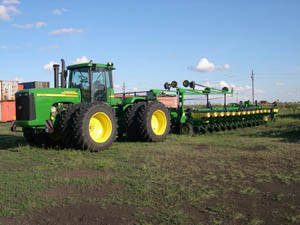 Конечно! Мы выбрали технику лидирующей в мире фирмы «Джон Дир». У них есть и комбайны, и тракторы, и сеялки, и опрыскиватели. Они могут подобрать агрегаты под конкретную площадь и