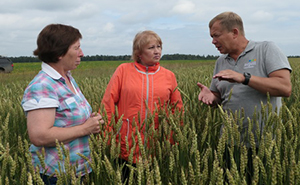 О. Е. Дементьева и Е. М. Чиркова с К. А. Холодковым на поле сорта Екатерина 21 августа 2019 года