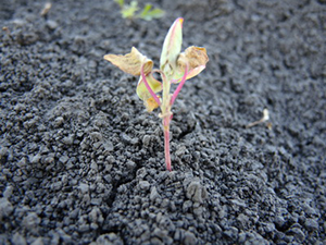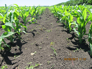 В момент обработки (19 мая) культура достигла фазы 5 листьев. Средняя исходная засоренность опытных участков поля составляла 155 шт/м2, из них 92,4 % – двудольные сорняки (преобладали виды щирицы – запрокинутая и жминдовидная, амброзия полыннолистная, марь белая и канатник Теофраста, 7,6 % – злаковые (преобладало просо куриное). Сорные растения находились в уязвимых фазах развития.
