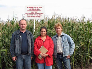 авторы гибрида ОМКА 130: И. Ильин, А. Логинова, директор Сибирского филиала ВНИИ кукурузы, М. Дубберт, представитель фирмы КВС (Германия);