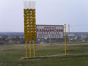 дорожный знак при въезде на территорию колхоза «Казьминский»;