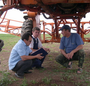 Второй комплекс проблем решается с помощью тщательного распределения обязанностей сторон при подготовке договора предоставления услуг по опрыскиванию плюс тесного контакта между представителями агрофирм и компании «Август» на местах. Кроме того, планируется дополнить парк опрыскивателей собственными агрегатами для подвоза воды и приготовления рабочего раствора, так как имеющиеся в хозяйствах сильно изношены, и это является узким местом в технологической цепочке.