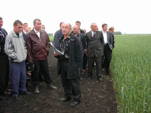 На снимках: В. В. Немченко выступает перед участниками семинара КНИИСХ 7 июля 2005 года; на поле, введенном в севооборот с помощью торнадо, не потребовалось гербицидных обработок по вегетации.