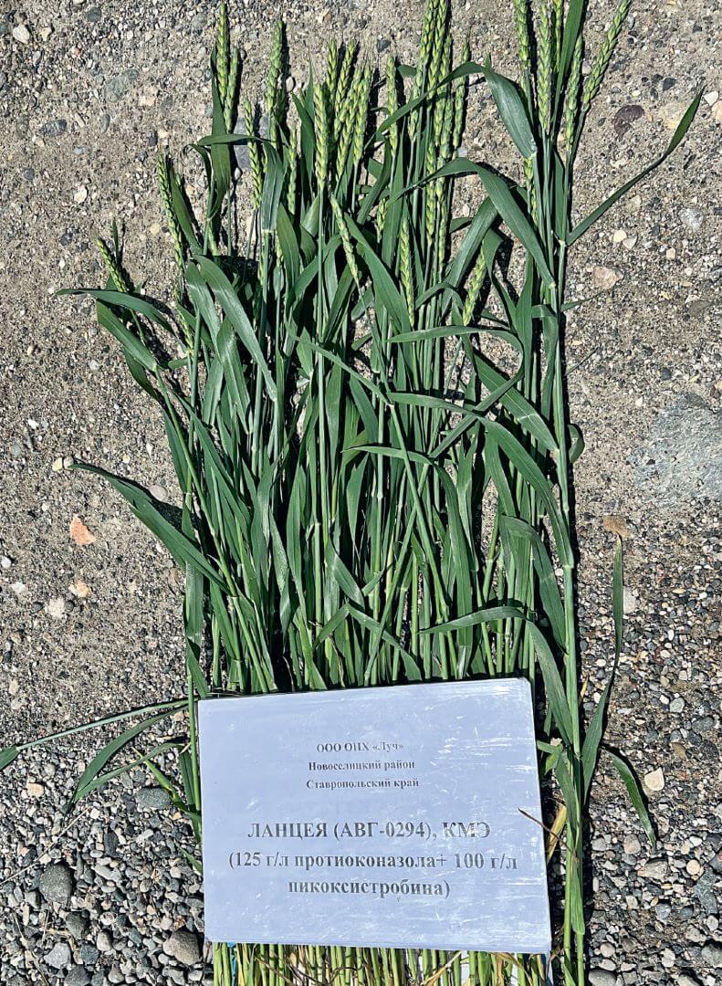 Опыт применения. В сезоне 2023 года Ланцею в норме расхода 1 л/га применили в Новоселицком районе Ставропольского края на опытном поле озимой пшеницы сорта Еланчик. Основной целью была оценка эффективности препарата против листостебельных заболеваний в условиях засушливой зоны.