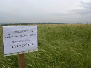 Названные гербициды могут работать намного эффективнее, если применять их в рекомендованных баковых смесях, а также в комплексе с другими ХСЗР. Об этом рассказал менеджер фирмы «Август» Виталий Исаев. Практика сибирских хозяйств показала, что наиболее эффективное сочетание магнума и диалена-супер – 4 г + 0,4 л в расчете на 1 га. При этом прибавка урожая зерна достигает 8 ц/га, заметно расширяется спектр уничтожаемых сорняков, причем эффективнее подавляются самые злостные из них.