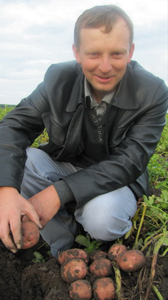 Дмитрий Ратушный иллюстрирует свое сообщение также несколькими снимками клубней картофеля сорта Романо. На одном из снимков – главный агроном «Агрокомплекса-98» Олег Левковский с довольной улыбкой осматривает подкопанный куст картофеля – клубни крупные и чистые. Спасибо Табу и ТМТД, они прекрасно сработали.