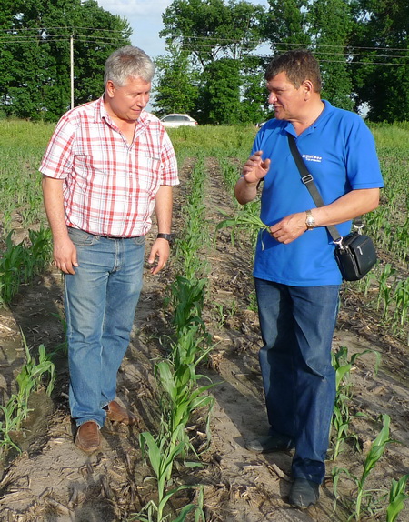 И. Агафонов (справа) консультирует руководителя хозяйства на киевском «поле-онлайн»