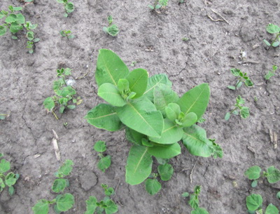 Торнадо 500 применил и Игорь Агафонов – консультант поля сои в Киевской области Украины. Здесь гербицид сплошного действия внесли на второй день после посева в норме 1,5 л/га в смеси с препаратом на основе ацетохлора, 1,8 л/га. В качестве эксперимента на участке в 10 га Игорь решил использовать гербицид Лазурит, обладающий почвенным действием. Кроме того, технолог пишет: «В посевах обнаружен давний «знакомый» – ваточник сирийский (Asclepias syriaca), с которым тяжело бороться, особенно в посевах сои. Об этом поговорим в следующих репортажах».