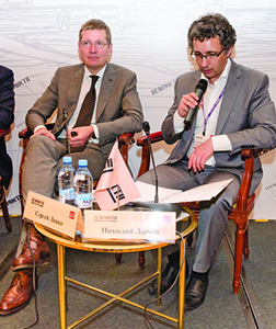 Слева С. Левин, справа – модератор Н. Лычев