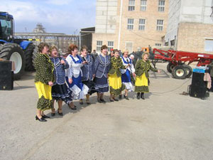 участников совещания встречали песней….;