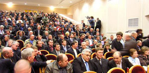 На снимке: в президиуме совещания, с микрофоном – А. В. Новак;