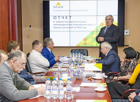 Традиционное общее собрание членов Российского союза производителей химических средств защиты растений (РСП ХСЗР) состоялось 19 апреля 2016 года в Москве в центральном офисе компании «Август». На нем были обсуждены итоги работы Союза за 2015 - начало 2016 года, утверждены ближайшие планы деятельности организации и ряд других вопросов.