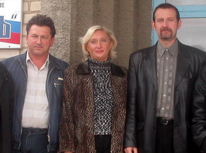 На снимках: слева направо – главный агроном ЗАО «Русь» Н. И. Кравцунов, Н. А. Андриянова, начальник отдела демонстрационных испытаний фирмы «Август» Ю. Усачев;