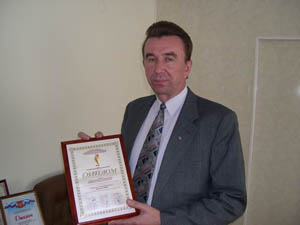 На снимке: генеральный директор ЗАО «Кристалл-групп» Юрий Игнатьевич РУДАКОВ с одним из многочисленных дипломов, присужденных его компании за успешное ведение аграрного бизнеса.