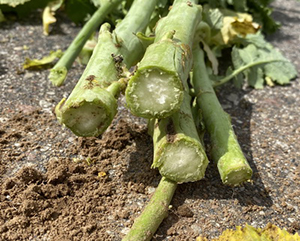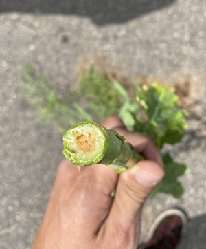 Повреждения озимого рапса личинками семенного скрытнохоботника