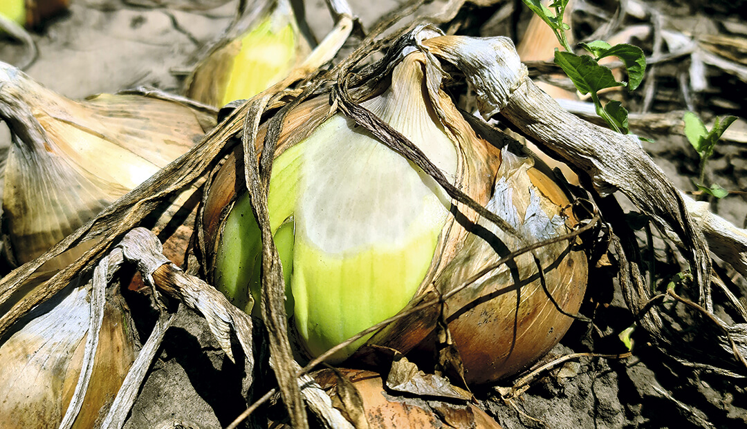 Усыхание ботвы открывает солнечным лучам поверхность луковиц, ранее находившуюся в тени. И если слишком затянуть с уборкой, то значительная часть урожая может быть повреждена солнечными ожогами