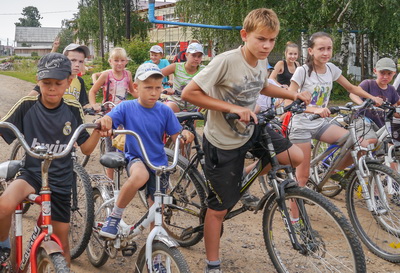 Заезд юных велосипедистов в «Веселых стартах»