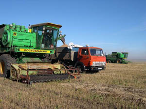 Хуснеев: Из 5183 га пашни под зерновые культуры отведено 2700 га. Озимые, 1000 га, сеяли непротравленными семенами те хозяйства, что были до нас, поэтому большого урожая ждать не приходилось. С яровыми на 1750 га тоже рисковали, потому что поля с осени не были вспаханы. Урожай мы получили только благодаря элитным семенам, достаточному количеству удобрений и препаратам. На некоторых участках пшеница дала по 52 ц/га, а в среднем по хозяйству – 25 ц. В первый год на такой запущенной земле – это немыслимый результат!