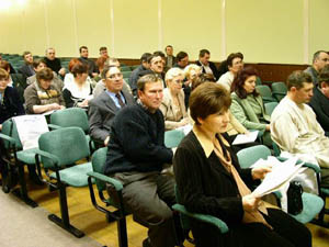 На снимках: участники семинара в зале; на трибуне – Галина Ледовская, выступает Дмитрий Плишкин; собрание ведет Маргарита Лазурина.