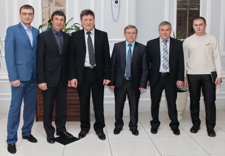 На совещании в Курске: (слева направо) Евгений, Александр и Евгений Сяпуковы, Вячеслав, Петр Салюкины и Алексей Романов